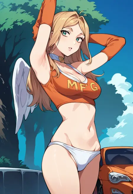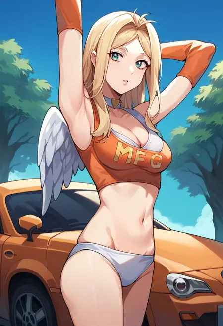 A rather fanservicey outfit in an anime all about race car driving. Sounds like the perfect subject for a LoRA!