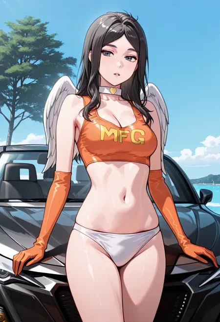 A rather fanservicey outfit in an anime all about race car driving. Sounds like the perfect subject for a LoRA!