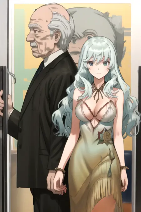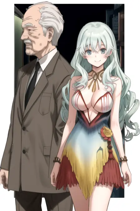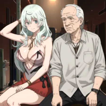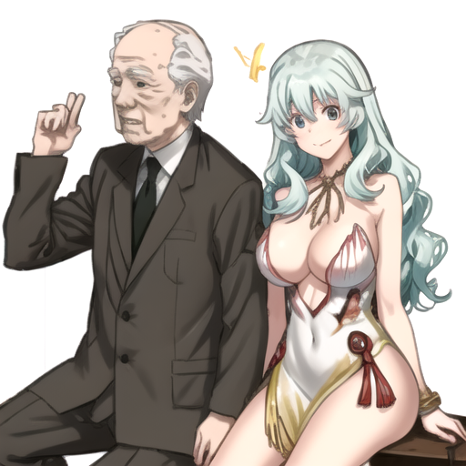 InuyaArtemis, an old man and a woman, hetero, standing, smile, cowboy shot