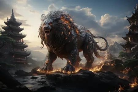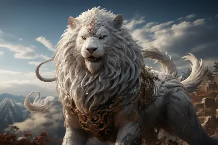 Auxiliary prompt words: dream, Fantasy, Lion, tiger, dragons, monsters, sharp tea, ride