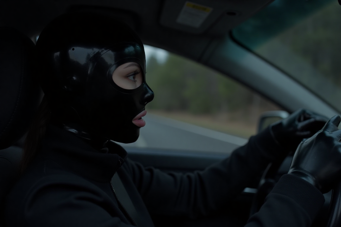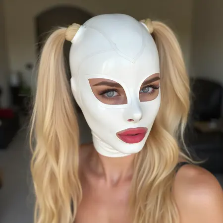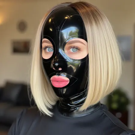 Add a sentence to the prompt: {subject} wearing {color} latex mask.