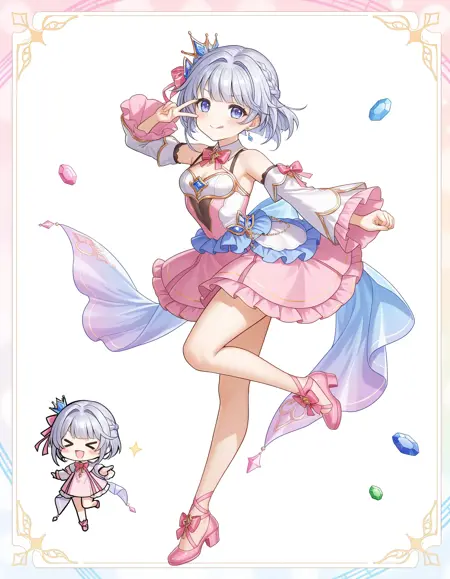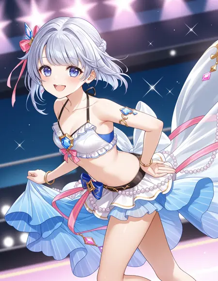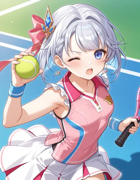 shironeko project,tina topia,white hair,short hair,hair intakes,hair bow,hair ornament,braid,blue eyes,small breasts