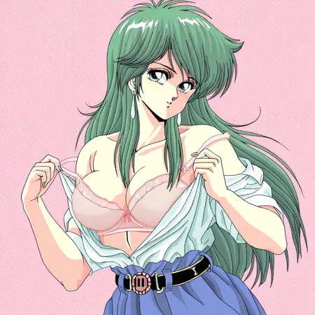 **触发词:**shgai,1girl,solo,long hair,green hair,green eyes,retro artstyle,1980s (style),