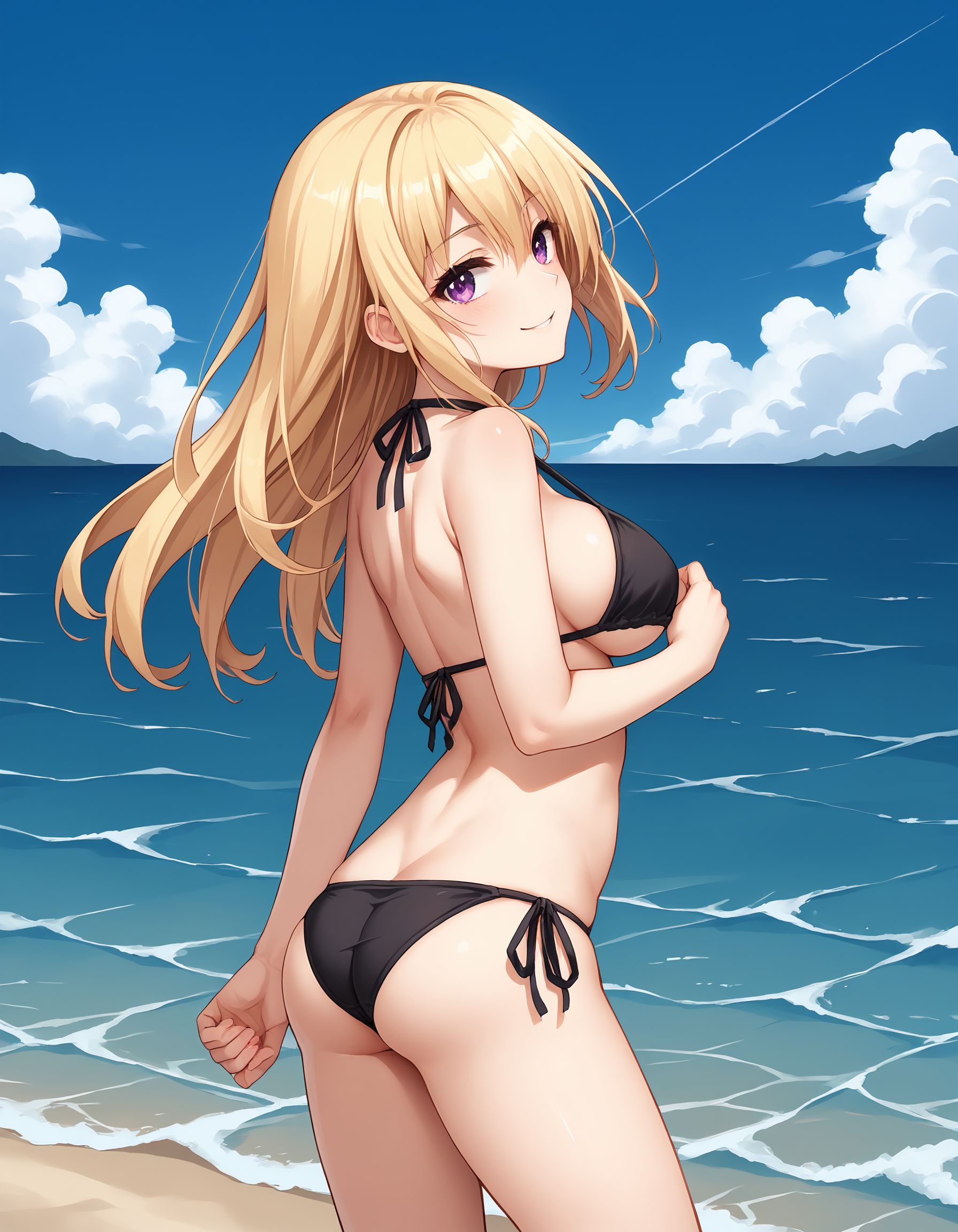 服装03,比基尼,黑色比基尼,挂颈式比基尼上衣,乳房下方,侧乳房,侧系带比基尼,遮盖物,