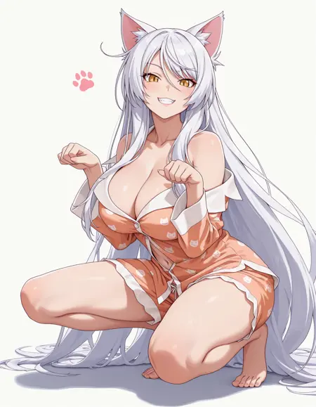 blackhan, silvery white hair, golden eyes, big breasts, 1girl, animal ears, cat ears, long hair, white hair, yellow eyes, breasts, solo, large breasts, slit pupils, paw pose, very long hair, cat girl, underwear, cleavage, bra, looking at viewer, pajamas, open mouth, panties, nipples, fang, barefoot, smile, nude, black bra, hetero, ass, completely nude, 1boy, cat print, penis, underwear only, animal print, white background, navel, black panties, blush, sex, grin, tongue, one eye closed, tail, cat tail, cum, uncensored, pussy, mouth hold, all fours, closed eyes, moon, swimsuit, sitting, fangs, alternate breast size, paizuri, simple background, web address, vaginal, anus, wariza, fish, hair between eyes, black background, long sleeves, tongue out, armpits, arms up, fang out, employee uniform, legs, uniform, bra pull, striped panties, strap slip, green eyes, disembodied limb, thighhighs, bell, fingering, grabbing, neck bell, solo focus, breast grab, convenient censoring, kneeling, lingerie, bikini, black bikini, sex from behind, arm held back, facial, cum on body, cum on breasts, medium breasts, pants, shirt, feet, lying, watermark, white panties, pov, cum in pussy, masturbation, pussy juice, female masturbation, butt crack, squatting, off shoulder, dress, top-down bottom-up, taiyaki, food, underboob