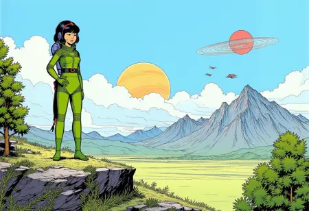 地球での衣装だけでなく、ボディスーツや宇宙服も描画可能。他のLoRA/LYCOなしで宇宙ヘルメットを非常にうまく追加できます