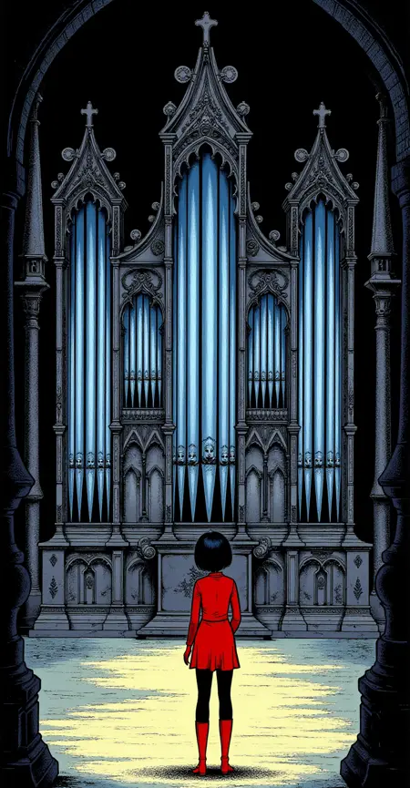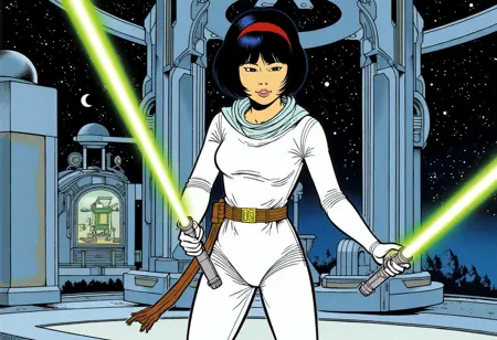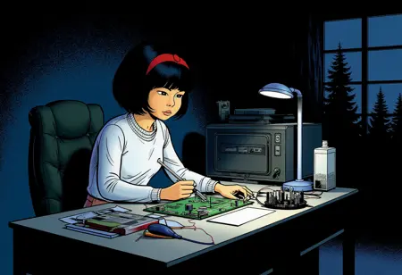 강화 태그: 검은 단발, 헤어밴드, 전통 매체, 과학소설, 레트로 아트스타일, 1980년대 \(스타일\), 1990년대 \(스타일\)