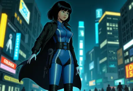 強化タグ: 短い黒髪、ヘアバンド、伝統的メディア、SF、レトロなアートスタイル、1980年代(スタイル)、1990年代(スタイル)