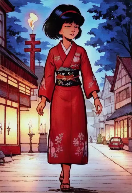此模型需要大量预处理:可用图像极少,多为需修复的旧海报。但效果尚可——你始终会得到她1980-1990年代的造型。截至目前,尚未进行其他任何改编,粉丝艺术作品也极少,因此无论怎样都会忠实于原漫画风格。