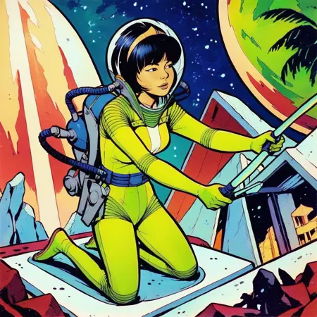 • 可绘制她地球上的服装以及紧身衣/宇航服,非常擅长在不使用其他LoRA/LoCo的情况下添加宇航头盔