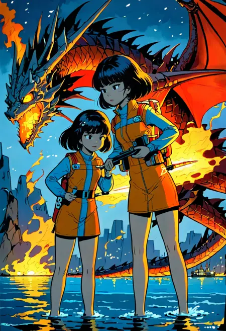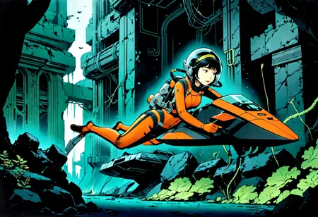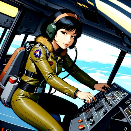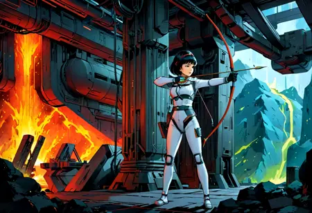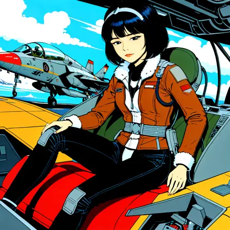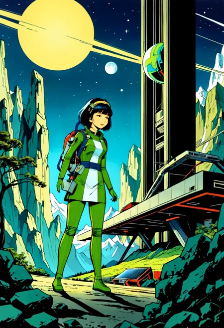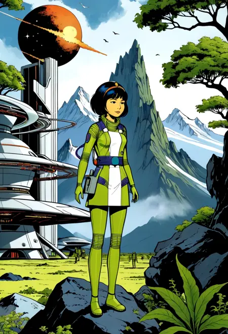 Reinforcement tags: Short Black Hair, Hairband, Traditional Media, Science Fiction, Retro Artstyle, 1980s \(style\), 1990s \(style\)
