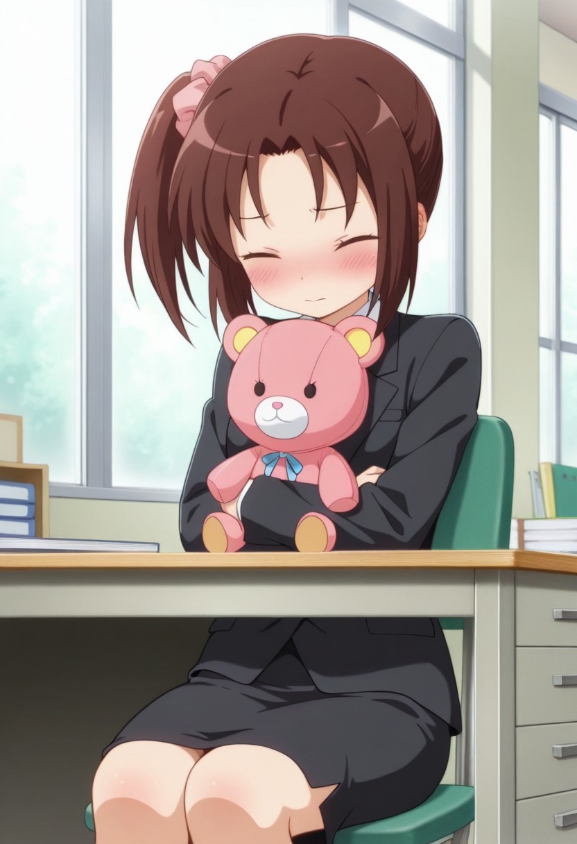 :kuzehashi akari,棕色头发,棕色眼睛,侧马尾