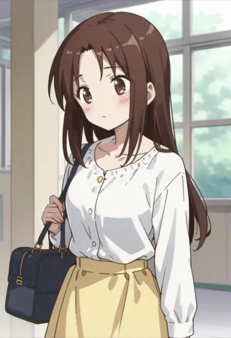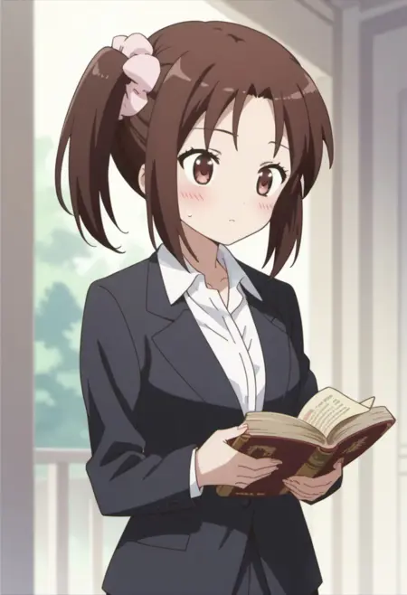 :kuzehashi akari,棕色头发,棕色眼睛,侧马尾