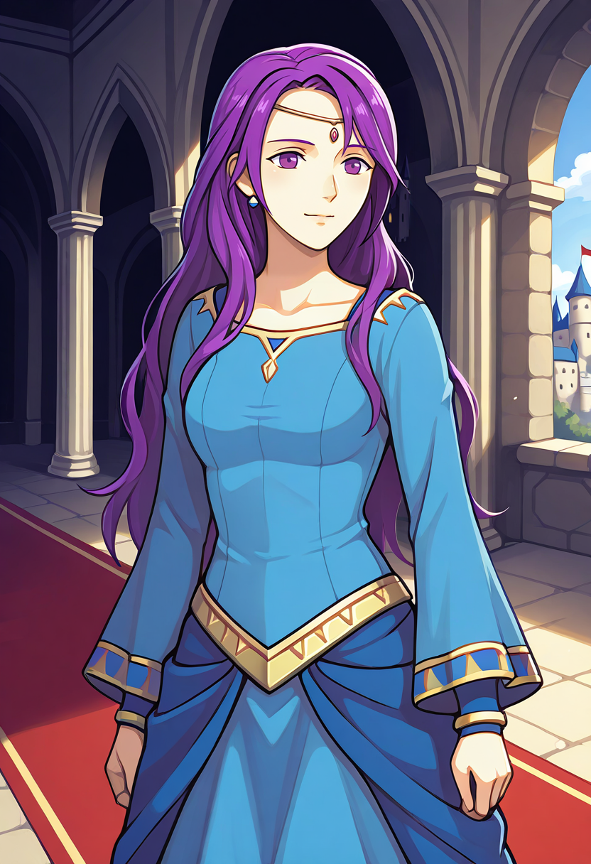 파이어 엠블렘 7의 엘리우드의 어머니, 도쿄 미라지 세션의 캐릭터와 혼동되지 않도록 주의. 주 프롬프트는 "EleanoraFE"이며, "보라색 머리, 긴 머리, 보라색 눈"을 포함. 기본 옷차림은 "파란색 드레스, 보석"