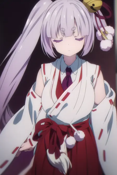 tsukuyo inaba, 긴 머리, 머리 장식, 트윈테일, 매우 긴 머리, 보라색 머리, (눈 감음:1.5), 두꺼운 눈썹,