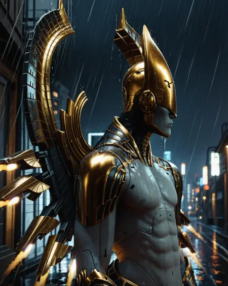 Main Keywords: arch0n, arch_he1met, covered eyes, mechanical wings, grey skin, bare chest, no legs, thruster underneath his hips, gloves