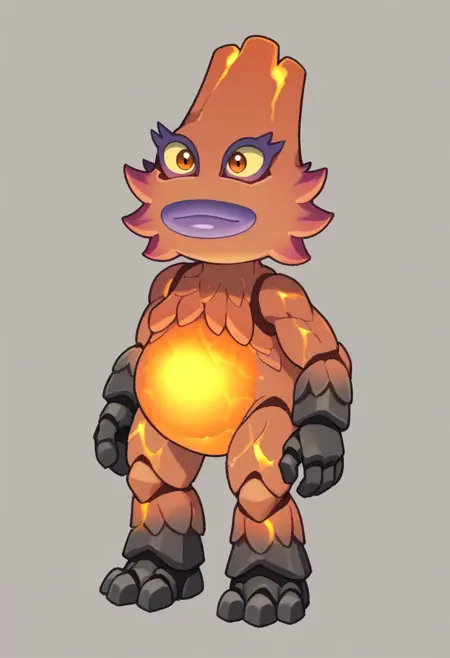 | 训练词汇 | KaynaMSM, fire-themed, glowing molten belly, rocky cracked outer skin, light yellow sclera, colored sclera, dark orange eyes, light purple eyelashes, light purple lips, big lips, orange tongue, colored tongue, no humans, pokemon (creature), 已复制! |
