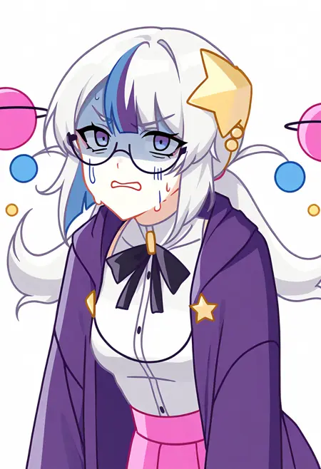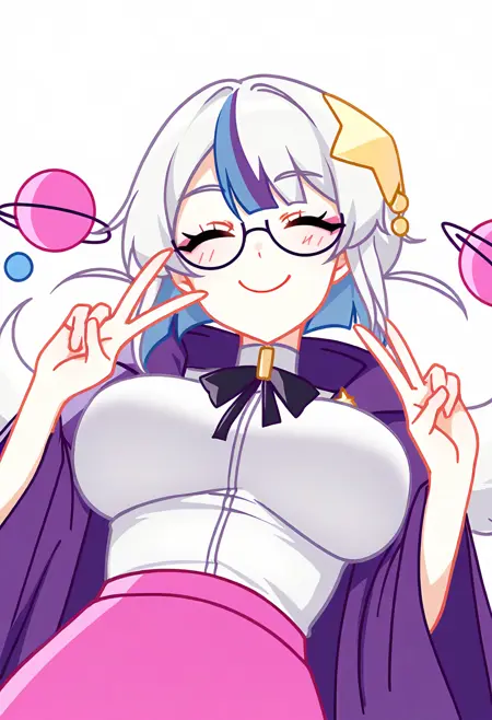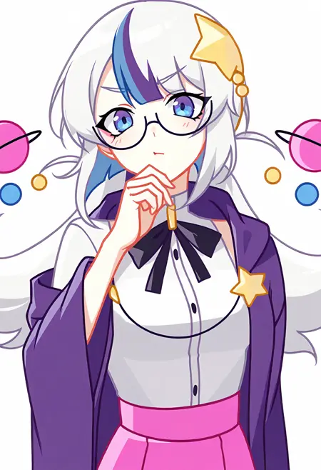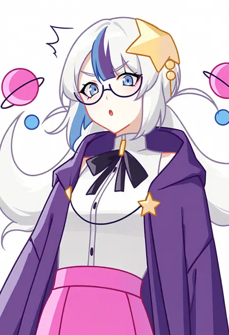 元のステッカーを用いて学習し、ほぼすべてを使用しました。モデルが脚や全身のキャラクターを描けるように、下部を切り取り、すべてのテキストを除去しました。各画像はR-ESRGAN 4x+ Anime6Bを使用して1024x1024に拡大し、ほとんどうまくいきましたが、一部にアーティファクトが生じており、生成時に現れることがあります。指の描画は苦手で、マントの二つの留め具をつなぐ黒い紐をほぼ常に無視するため、『black string』というタグを試してみてください(このタグはデータセットには含まれていません)。キャラクターの周囲に不必要な形が現れないように、ネガティブに『planets floating, hearts, sparkles』を追加してください。