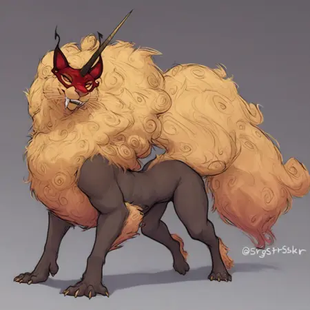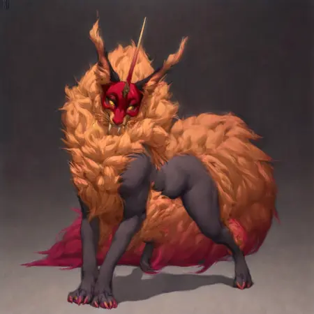 rvlsrttskr, yellow tuft, horn, fangs, sciurid, red mask,