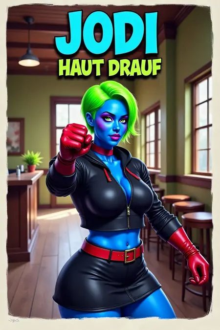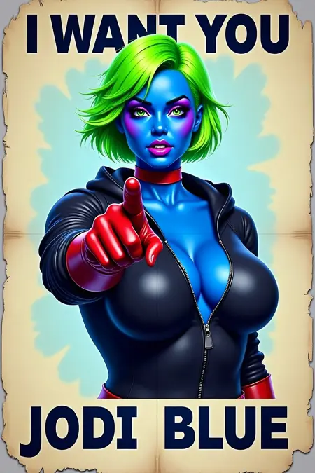 This is a LoRA of my own original character called Jodi Blue. She is a blue girl with superpowers and seductive but rebellish, too.