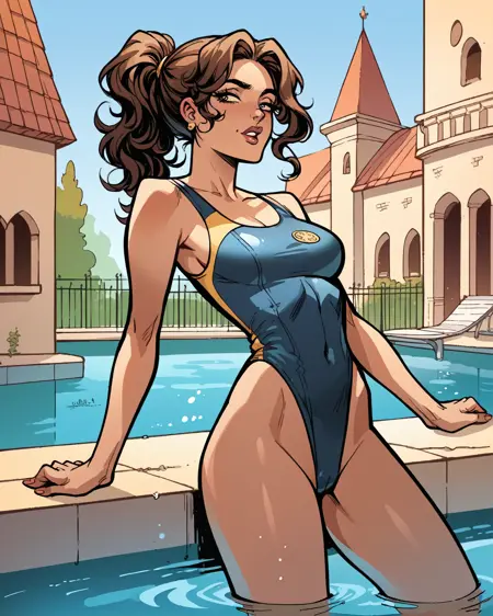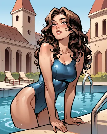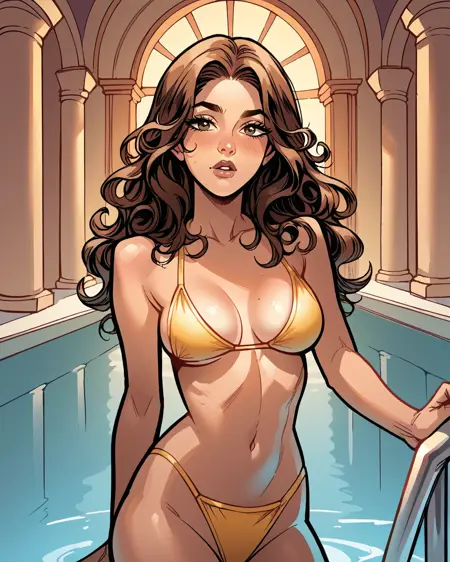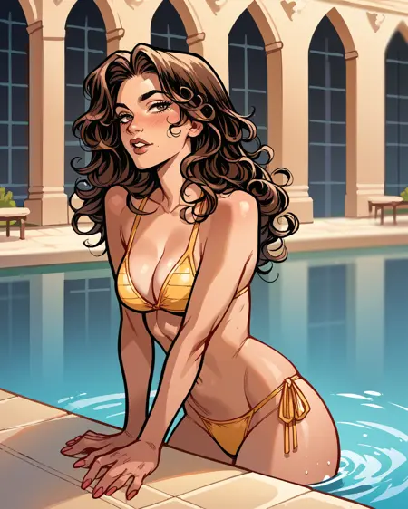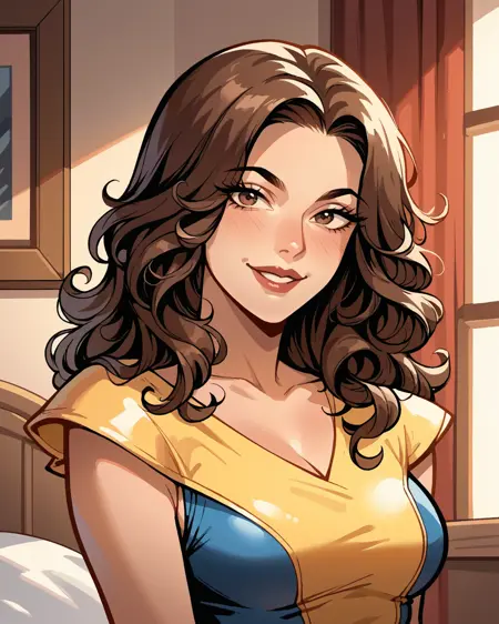 트리거: ultkitty, 갈색 머리, 긴 머리, 곱슬머리, 짧은 드레스, 벨트, 장갑, 부츠