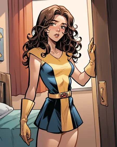 마블 만화의 키티 프라이드, 즉 샤도우캣. 이는 언더미트 시리즈 만화에 묘사된 그녀의 외모이다.