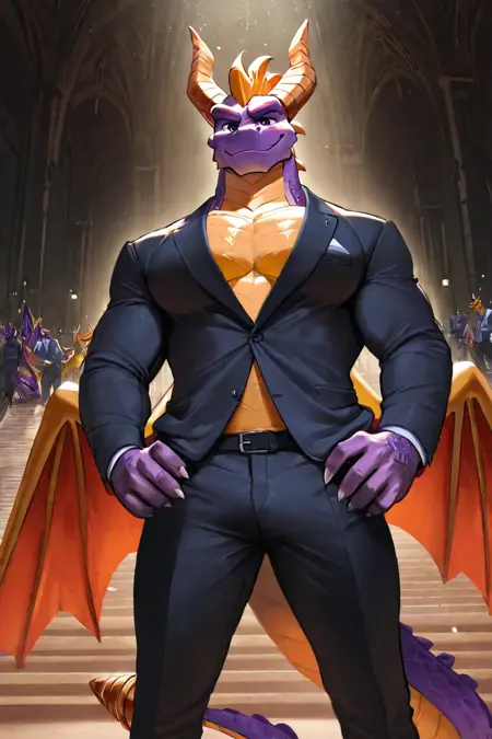 spyro, dragon, dragon tail, purple scales, yellow underbelly, dragon wings, membrane wings, claws, horns