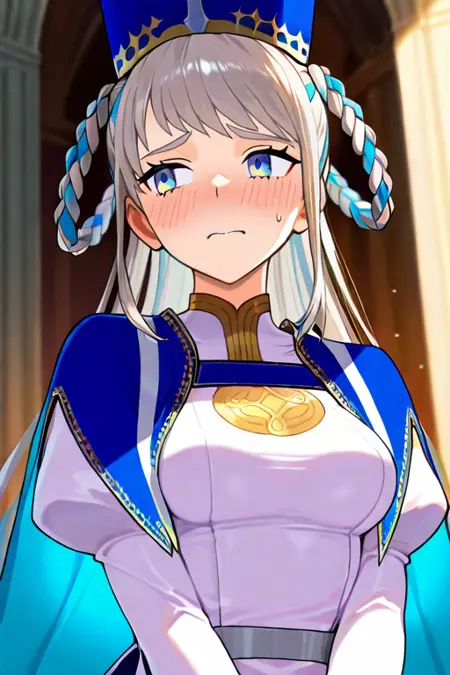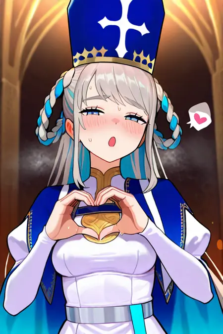 1个女孩,单人,主教冠,约安娜_(Fate),非常长的头发,灰色头发,双辫子,编发环,双色头发,蓝眼睛,