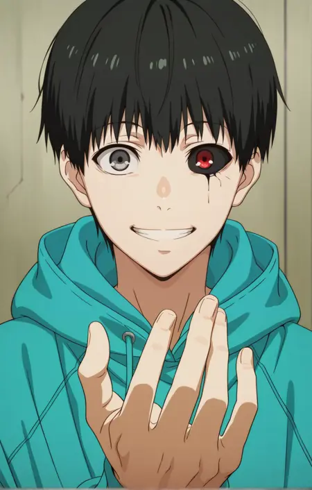 Example: ken kaneki, ken_v1, black hair, grey eyes,...
