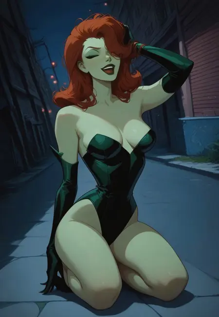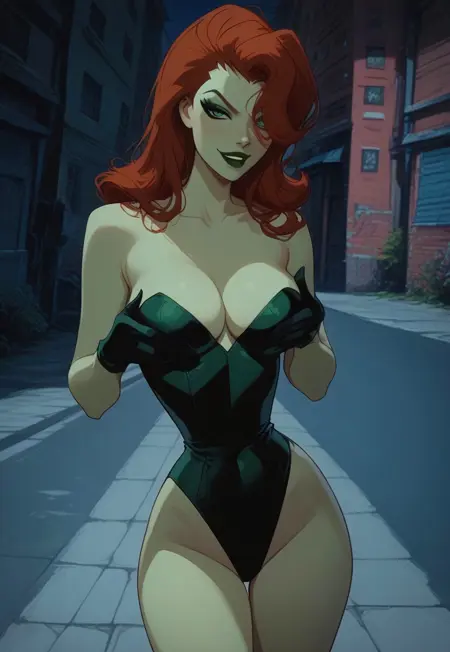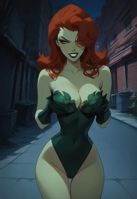 示例:Score_9, Score_8_up, Score_8_up, 电影感,1个女孩,成年人,成熟的辣妈,纤细身材,pivy_btas,毒藤女,红发,绿眼,绿色皮肤,口红,挑逗,眼线,美丽的面容,呻吟,性感的纤细身材,丰满自然的胸部,乳沟,紧身连体衣,性感,手套,摄影,模特姿势,细腰,宽臀