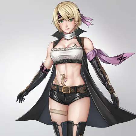 | トレーニングワード | RRXX_Rowdy_Reiko, 1girl, solo, scar, green eyes, short hair, blonde hair, sunglasses, eyewear on head, cleavage, mole on breast, scarf, tattoo, navel, choker, gloves, center opening, black bodysuit, unzipped, knee boots コピーしました! RRXX_Rowdy_ReikoSS, 1girl, solo, scar, green eyes, short hair, blonde hair, tattoo, elbow gloves, cleavage, shorts, headband, navel piercing, navel, midriff, black shorts, short shorts, piercing, belt, thighhighs, bootsコピーしました! |