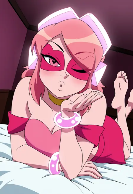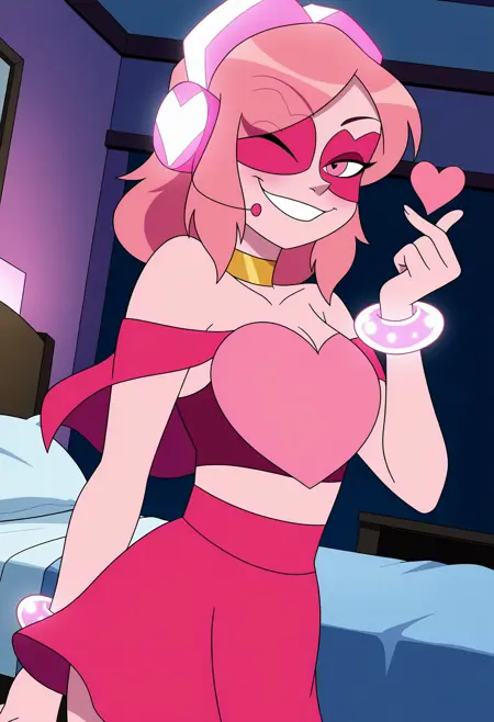 miss heed, 분홍 피부, 색상 피부, 분홍 머리카락, 분홍 눈, 심장형 동공