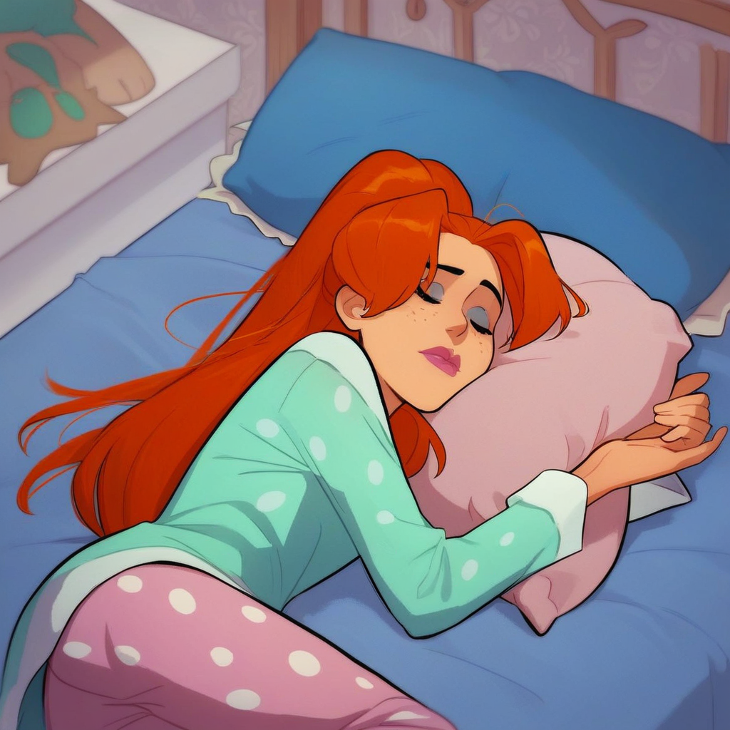 rachel dupain, les sisters, 红发, 长发, 马尾辫, 绿眼睛, 蓝色车头灯, 粉色口红,