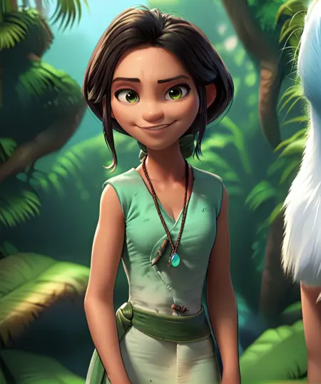 Dawn, 검은 머리, 녹색 눈, 긴 머리, 팔자머리.