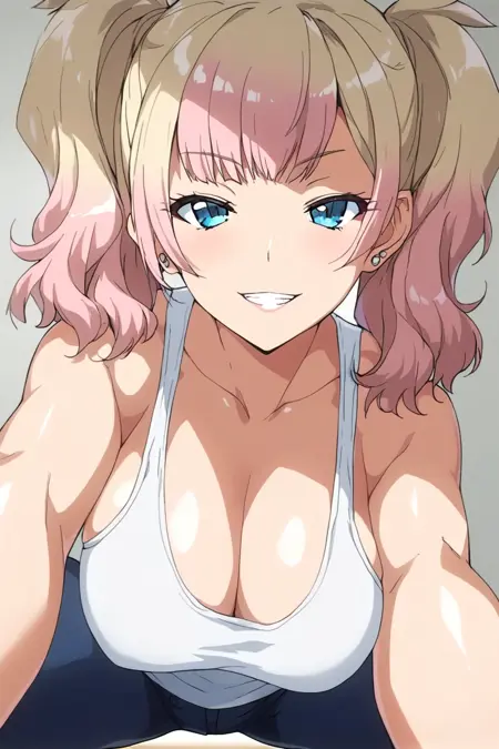 Appearance: Yariko, blonde hair, pink hair, multicolored hair, twintails, bangs, jewelry, earrings, large breasts