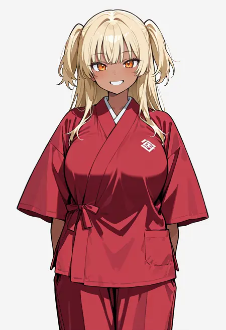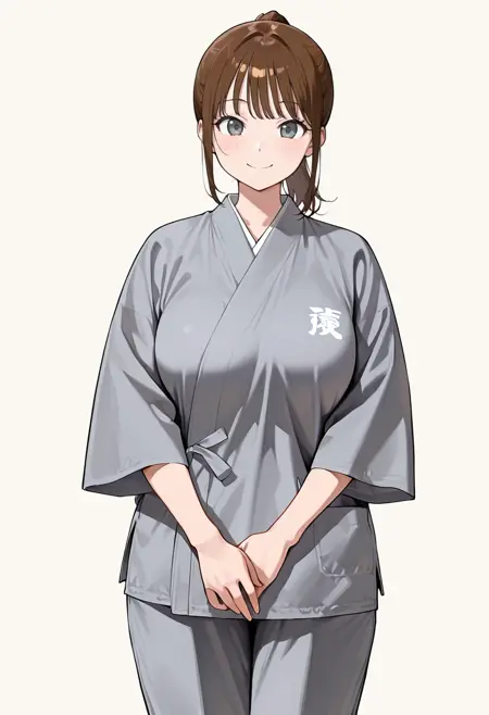 現在は飲食店など様々な場所で使用されるようになっている動きやすい和装で、普段着に使用する人もいます。いい感じの作務衣になるようにLoRAにしてみました。