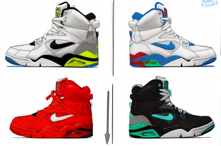 If there is a sneaker that screams 1990's era basketball then this is it. The Nike Air Command Force is an iconic high-top sneaker and this LoRA allows you to put a part of sneaker history in your own generations.