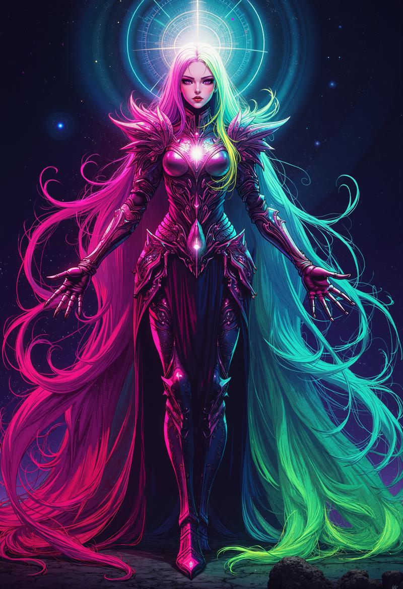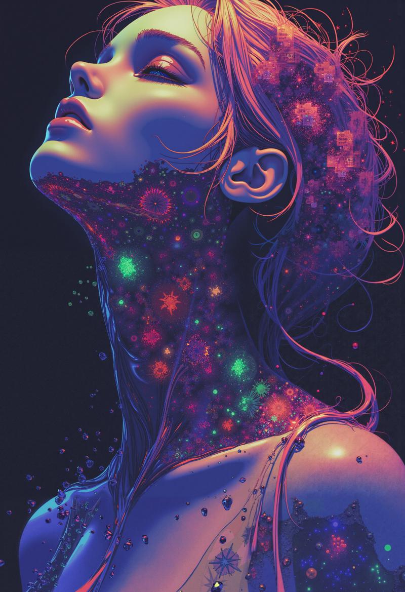 Dynamic Light Play: Supports complex lighting effects like spectral halos, neon reflections, and aura-like gradients that give the art a radiant, almost hallucinatory quality.