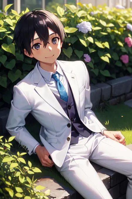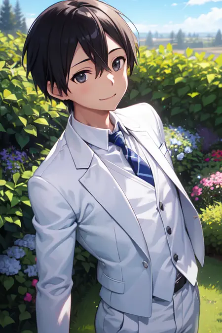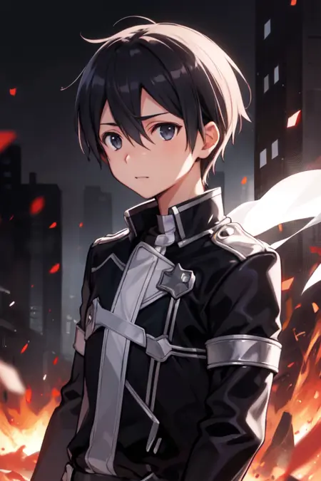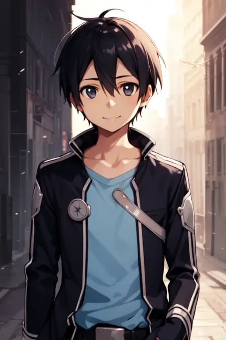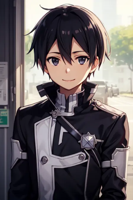 トリガーワード: kirito、黒髪、黒目、目の間に髪