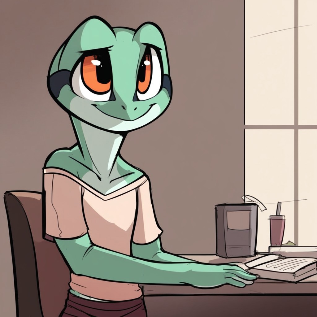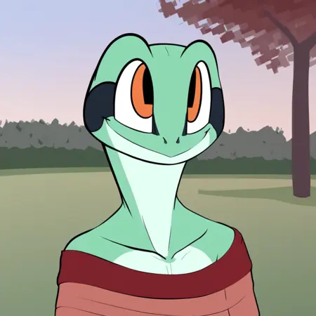 hinato(character), intersex, frog, orange eyes, flat chest,