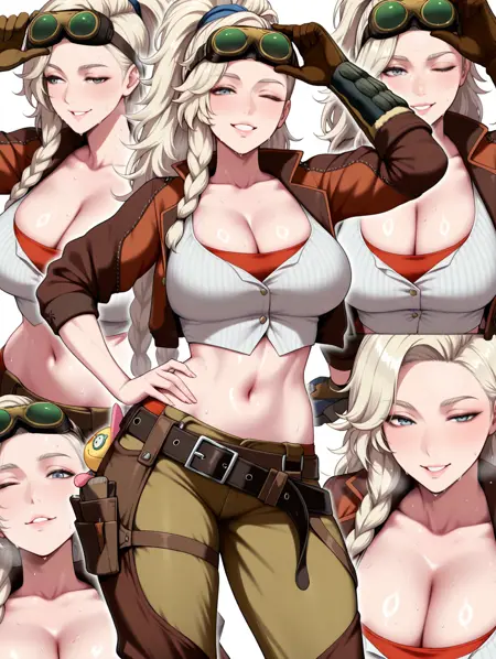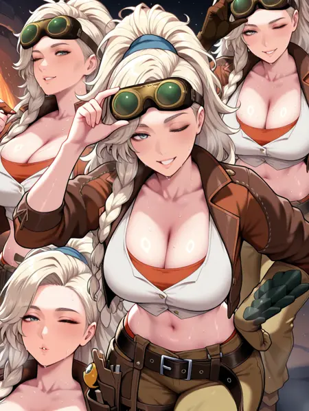 衣装タグ(追加):首にかけられたゴーグル、頭に載せられたゴーグル、ゴーグルを調整中、ベルトのポーチ、鳥のぬいぐるみ