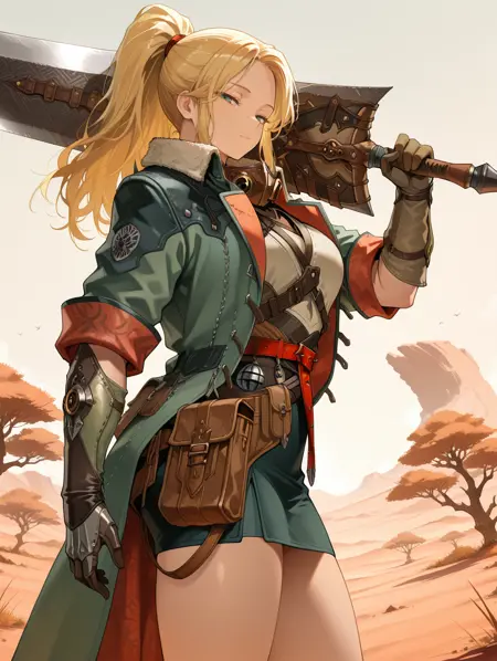 태그(무기): 거대한 검, 거대한 검 들고 있음, 등에 무기, 전투 자세