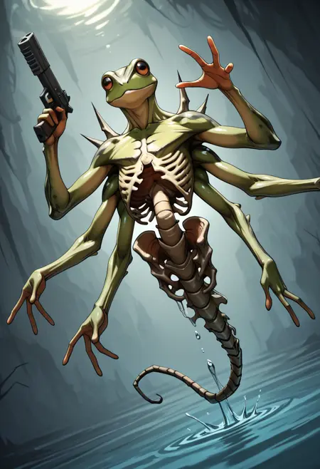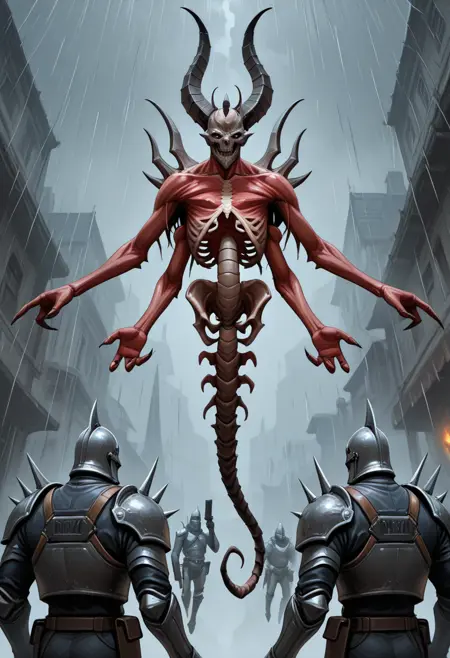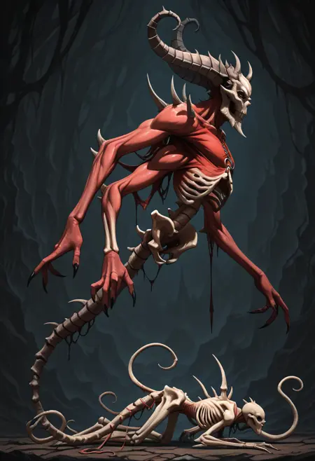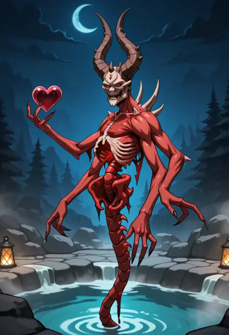 The tail-like end of the spine that Mephisto hovers on was called "snake leg" during training. I had thoughts of training him as a naga man or lamia man. Don't ask me why. However, this lora is not suitable for creating nsfw content.
