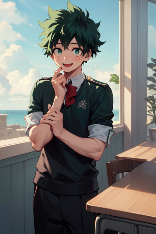 트리거 단어: deku, 1소년, 혼자, 남성 중심, 녹색 머리카락, 녹색 눈, 단발, 주근깨,