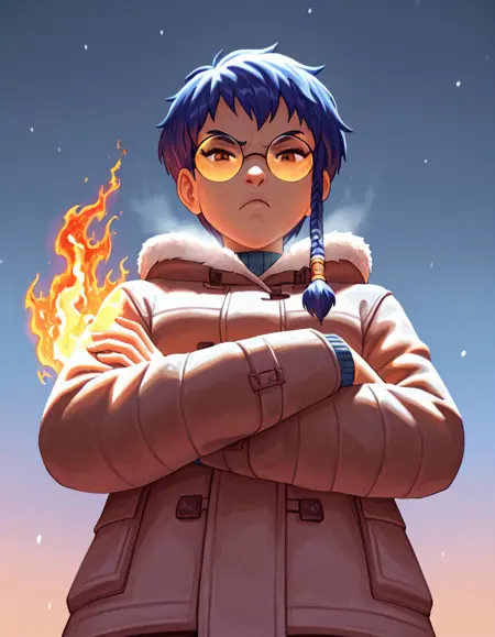 taranee_cook, blue hair, 1girl, short hair, braided pigtail, glasses, brown eyes