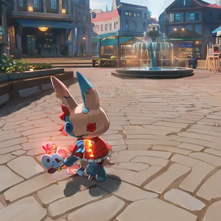 plushie_gang, echoes, wuthering waves, no humans, stuffed toy, stuffed animal, instrument, street, full body<lora:plushie_gang_v1:0.8> ADDBASE