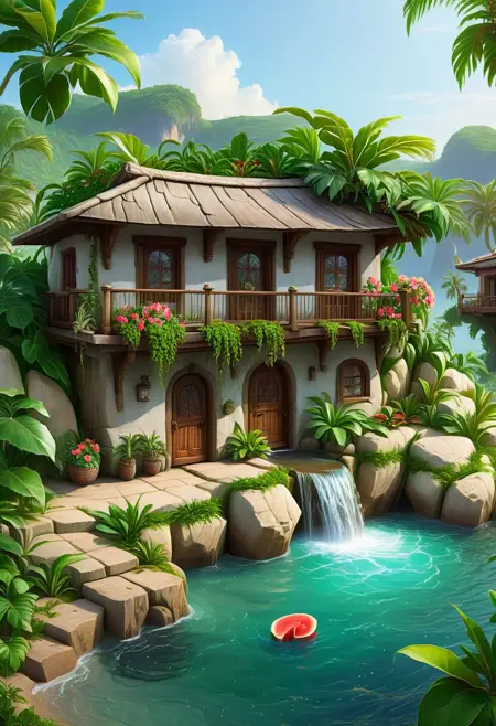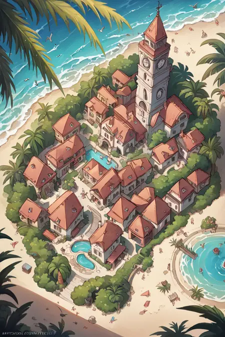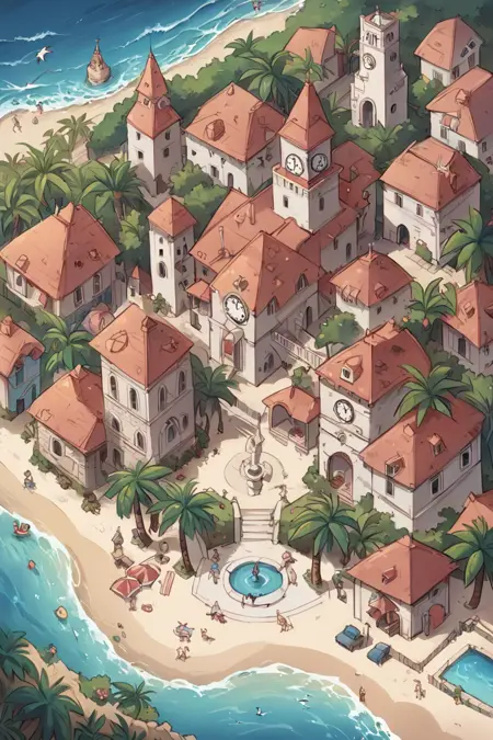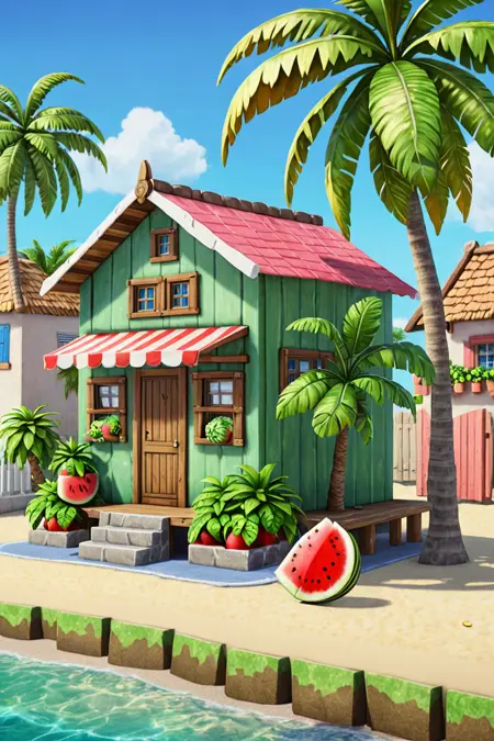 Tropical Buildings (Delfino Plaza, Super Mario Sunshine) [SDXL & SD1.5]