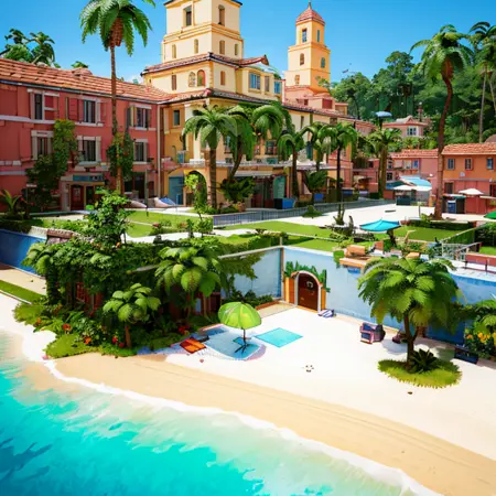 Tropical Buildings (Delfino Plaza, Super Mario Sunshine) [SDXL & SD1.5]