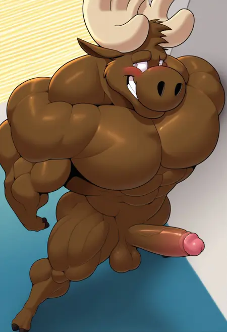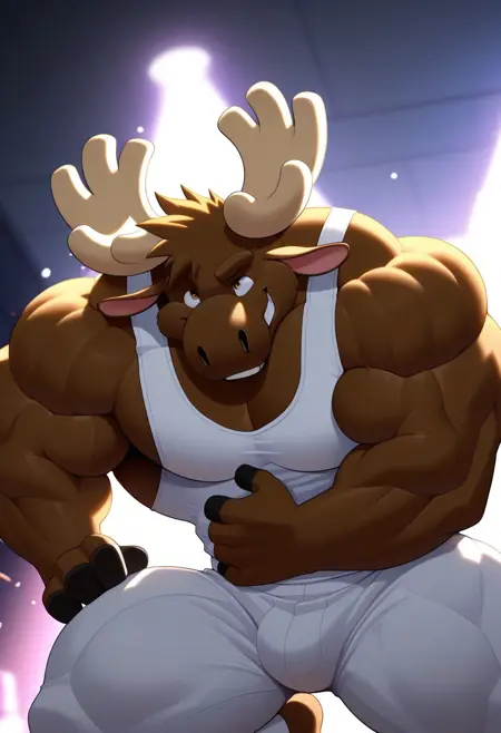micheal mitchell, moose, antlers, muscular male, bara, athletic build