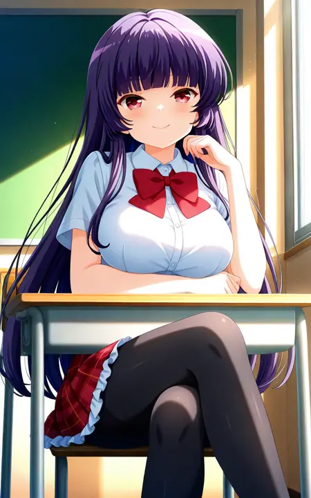 트리거 단어: kagurazakasaya, 보라색 머리카락, 곧은 앞머리, 매우 긴 머리카락, 붉은 눈